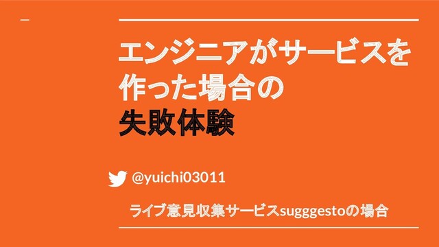 エンジニアがサービスを 作った場合の 失敗体験 ライブ意見収集サービスsugggestoの場合 @yuichi03011