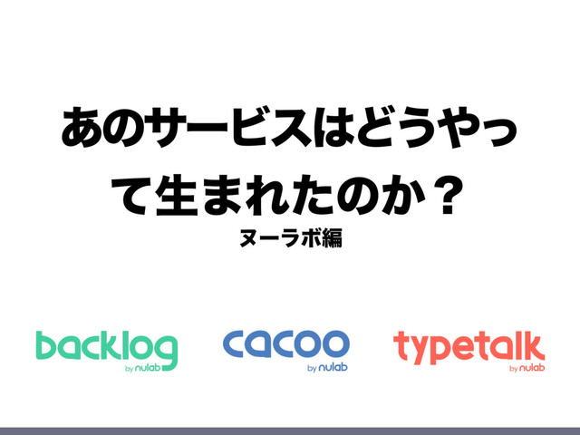 ヌーラボのプロダクトTypetalk( https://typetalk.in )のプロダクトオーナー、吉澤がGaiax Technical Meetupsさんの主催する「【エンジニア交流会】あのサービスはどうやって生まれたのか?」でお話しした内容です。