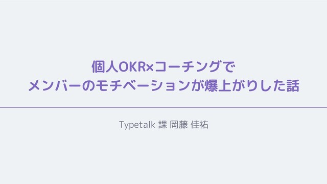 個人OKR×コーチングで メンバーのモチベーションが爆上がりした話 Typetalk 課 岡藤 佳祐