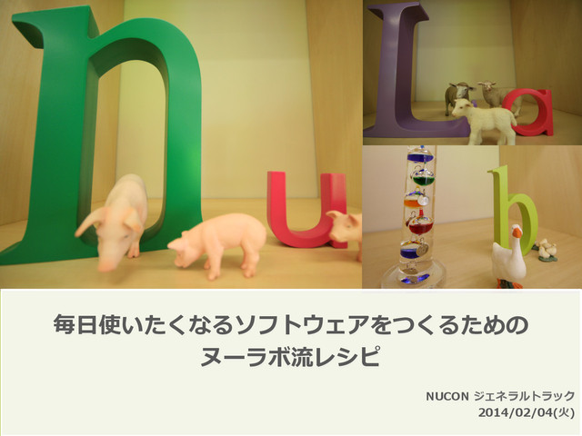 毎⽇日使いたくなるソフトウェアをつくるための ヌーラボ流流レシピ NUCON ジェネラルトラック 2014/02/04(⽕火)