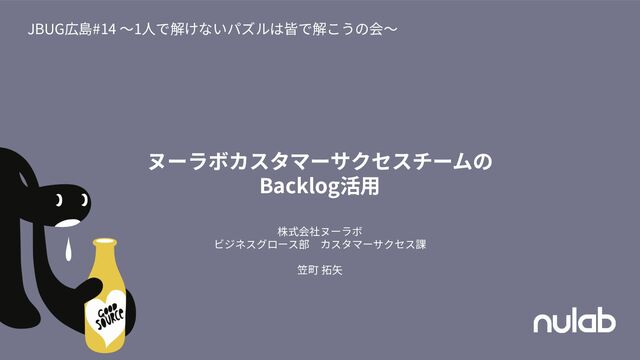 ヌーラボカスタマーサクセスチームの Backlog活⽤ JBUG広島#14 〜1⼈で解けないパズルは皆で解こうの会〜 株式会社ヌーラボ ビジネスグロース部 カスタマーサクセス課 笠町 拓⽮