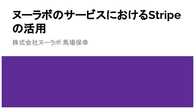 2018年11月13日に開催された「JP_Stripes (Stripe ユーザーグループ)Tokyo Vol.10 -- SaaS! SaaS!! SaaS!!! --」でヌーラボの馬場が発表した資料です。