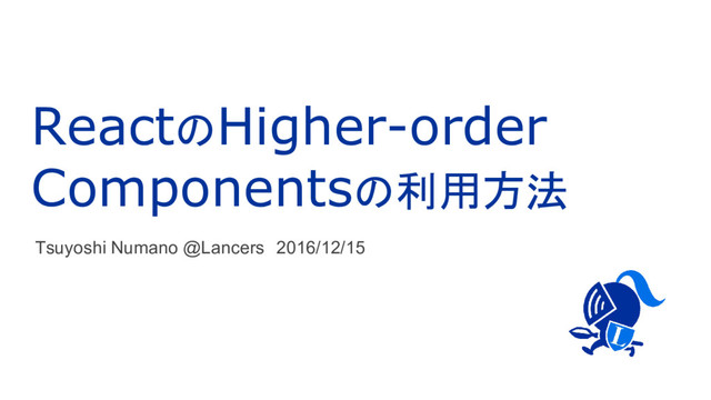 のコンポーネントで利用できるライブラリ) • muiThemeable() • redux-form (フォームの処理を react-redux のフローに乗せてくれるライブラリ) • reduxForm() • react-router(react のコンポーネント単位でルーティングを行えるライブラリ) • withRouter() • radium (cssの擬似セレクタをインラインで扱うライブラリ) • enhanceWithRadium() 最近よく見かける HOC を利用しているライブラリとその実装 ライブラリについて