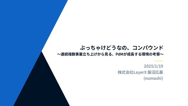 バクラク事業部 VP of Product 略歴 • ハードウェアエンジニア • プロジェクトマネージャー ‧将来はキウイ農家をしたい ‧バクラク事業の既存プロダクトを⾒たり、新規プロダクトを 複数作ったり、マネジメントしたり ‧今はバクラク共通管理というプロダクト横断的なユーザー管 理‧認証基盤のPdMとLLMを使った社内向けプロダクトのPdM @numashi_Biz • 法人営業 • プロダクトマネージャー 事業開発 ハードウェアエ ンジニア プロダクトマ ネージャー バックグラウンド • 事業開発 • マーケ・IS・FS・CS幅広に