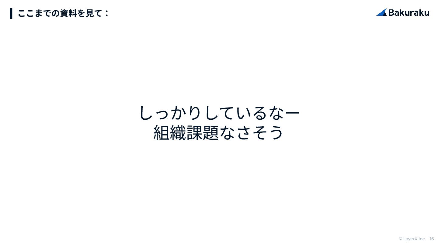 © LayerX Inc. 16 ここまでの資料を⾒て: しっかりしているなー 組織課題なさそう