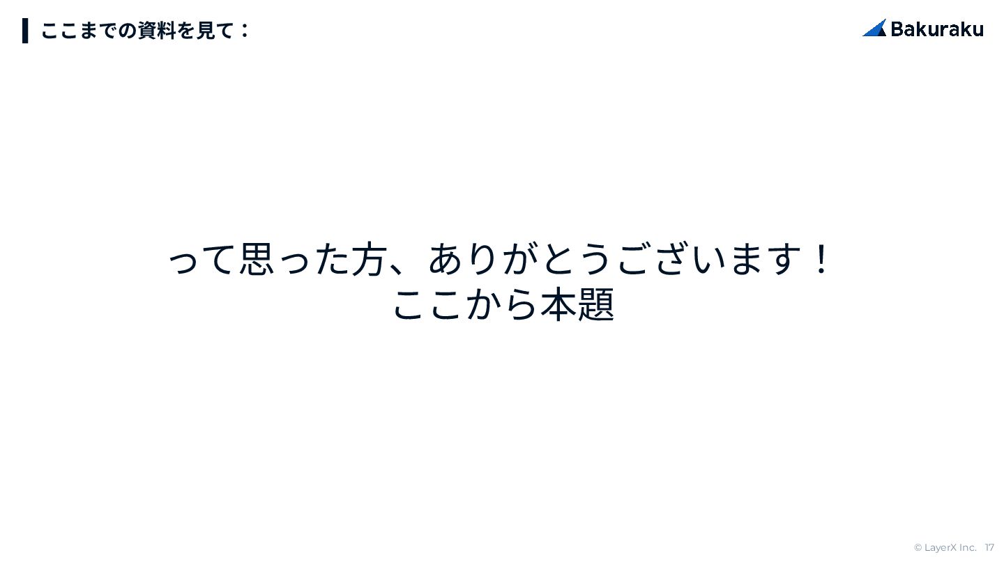 © LayerX Inc. 17 ここまでの資料を⾒て: って思った⽅、ありがとうございます! ここから本題