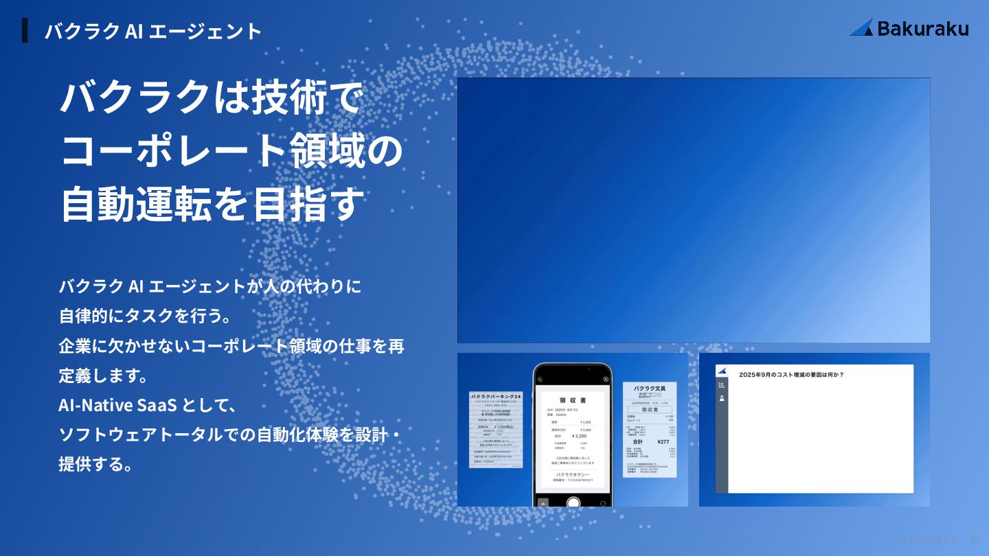 © LayerX Inc. 10 バクラク AI エージェント バクラクは技術で コーポレート領域の ⾃動運転を⽬指す