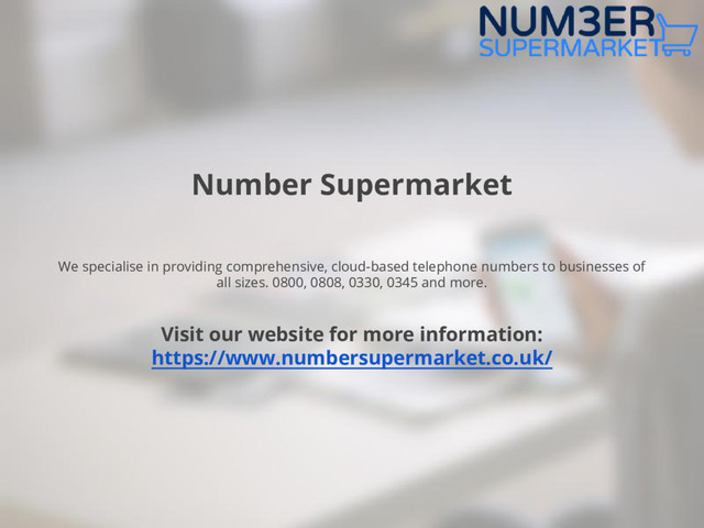 to businesses of all sizes. 0800, 0808, 0330, 0345 and more. Visit our website for more information: https://www.numbersupermarket.co.uk/