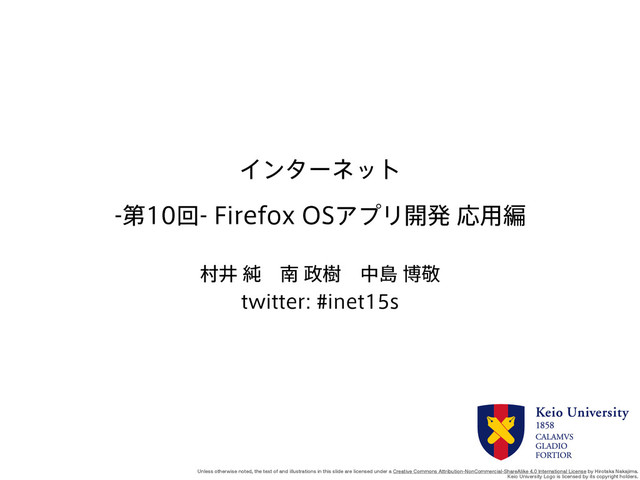 slide are licensed under a Creative Commons Attribution-NonCommercial-ShareAlike 4.0 International License by Hirotaka Nakajima. Keio University Logo is licensed by its copyright holders. Πϯλʔωοτ ୈճ'JSFGPY04ΞϓϦ։ൃԠ༻ฤ ଜҪ७ɹೆथɹதౡതܟ UXJUUFSJOFUT