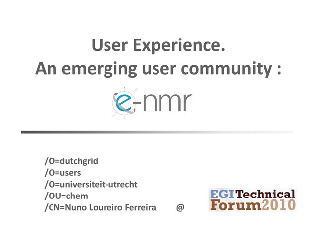 the life sciences • 210 registered users and growing • > 13000 CPUs • > 350 CPU years over the last 12 months • 20% of Life Sciences on the Grid • User-friendly access to e-Infrastructure via web portals • Manuals for the e-NMR software and web-portals • e-NMR use-cases for use with the User Interface • PnP version of the gLite 3.1 UI (based on Gilda PnPUI) • Virtual instances of UI with e-NMR enabled e-NMR platform operational and well used!