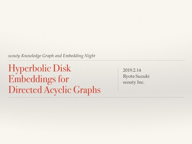 Euclidean space) ❖ Used as a first layer of NN ❖ Obtains relation of entities as geometrical structure ❖ This paper: Embedding directed acyclic graphs (DAGs) vwoman − vman + vking = vqueen