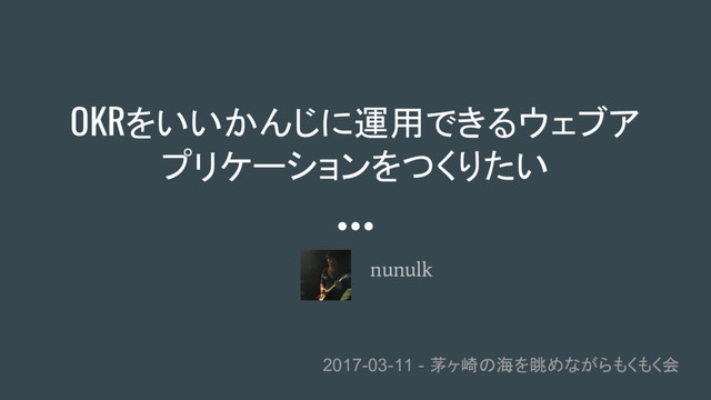 OKRをいいかんじに運用できるウェブア プリケーションをつくりたい nunulk 2017-03-11 - 茅ヶ崎の海を眺めながらもくもく会