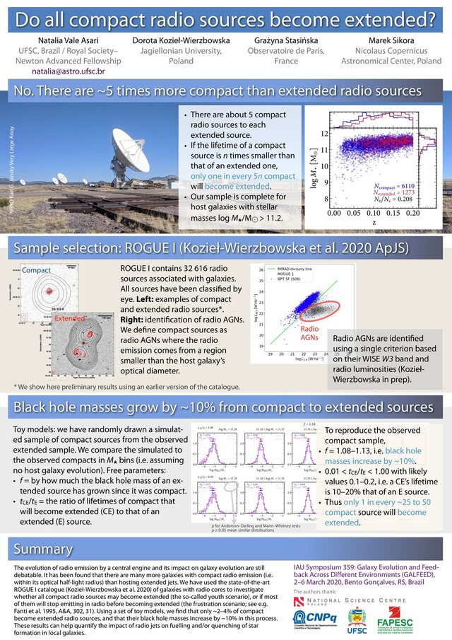 extended sources Sample selection: ROGUE I (Kozieł-Wierzbowska et al. 2020 ApJS) No. There are ~5 times more compact than extended radio sources Do all compact radio sources become extended? Natalia Vale Asari UFSC, Brazil / Royal Society– Newton Advanced Fellowship