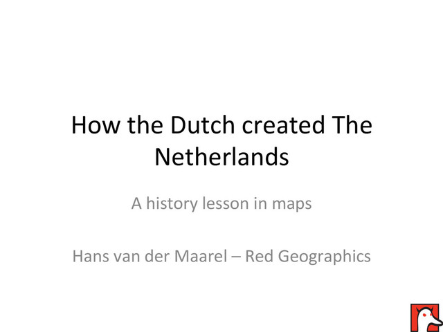Seeing a modern Dutch coastline on a map that's supposed to portray something set in the past is something that annoys me immensely. In this talk I will highlight some of the big, man-made, changes in Dutch geography.