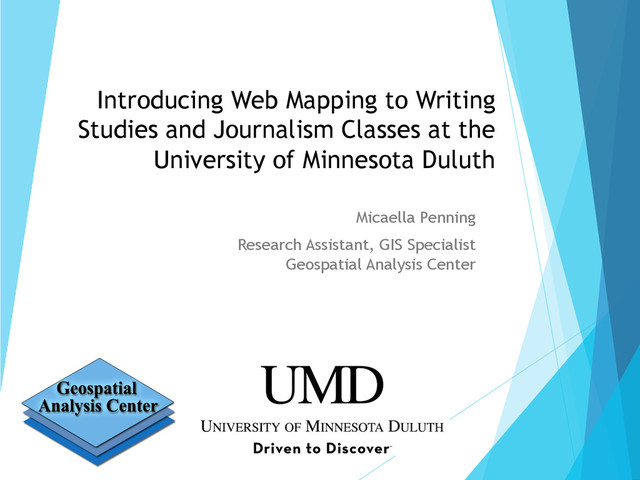 opportunities for storytelling, you also gave me some ideas for projects…I think there could be some real cross-over appeal between the journalism and GIS programs [at UMD]…Visual Journalism and Data Journalism are two subsectors of the industry that are actually hiring right now… Having this resource for students in the journalism program has allowed us to expand and modernize our curriculum to match industry demands…It would be great to figure out even more ways to get our journalism students exposed to GIS. - Chris Etheridge, UMD Instructor of Journalism