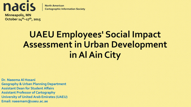 in Al Ain City Dr. Naeema Al Hosani Geography & Urban Planning Department Assistant Dean for Student Affairs Assistant Professor of Cartography University of United Arab Emirates (UAEU) Email: [email protected] Minneapolis, MN October 14th–17th, 2015