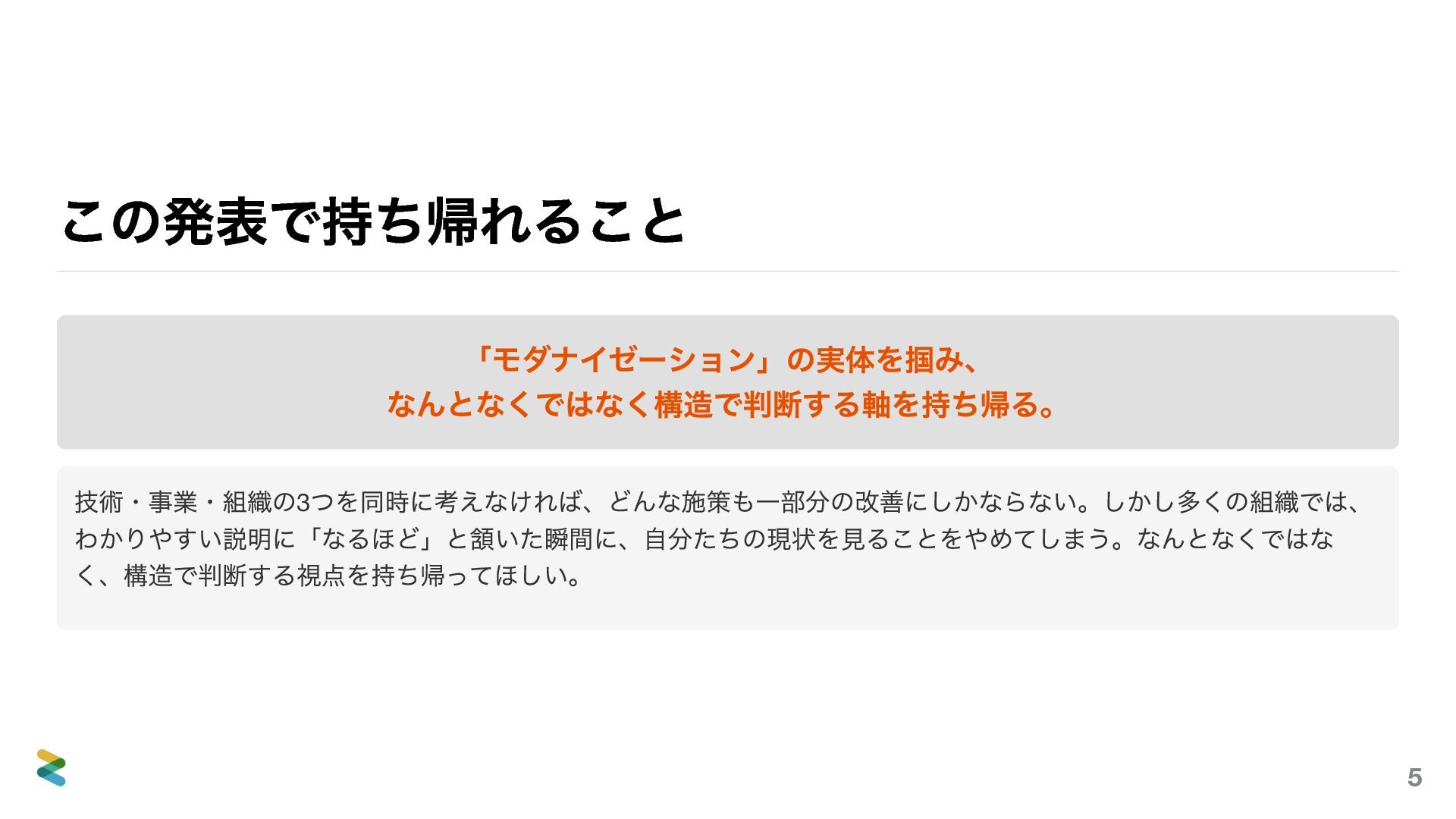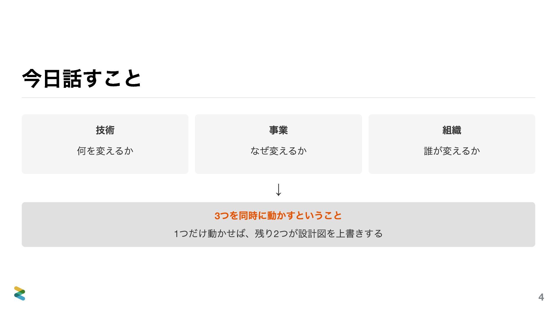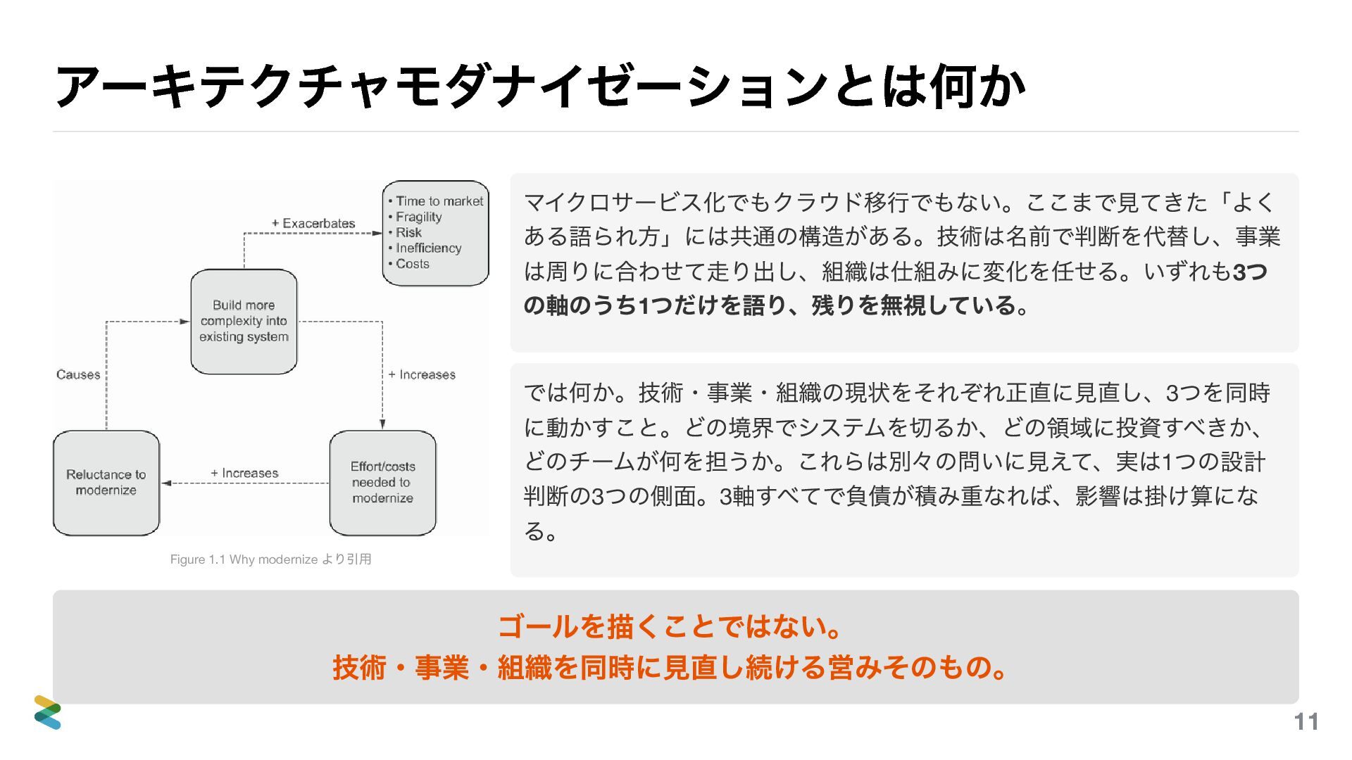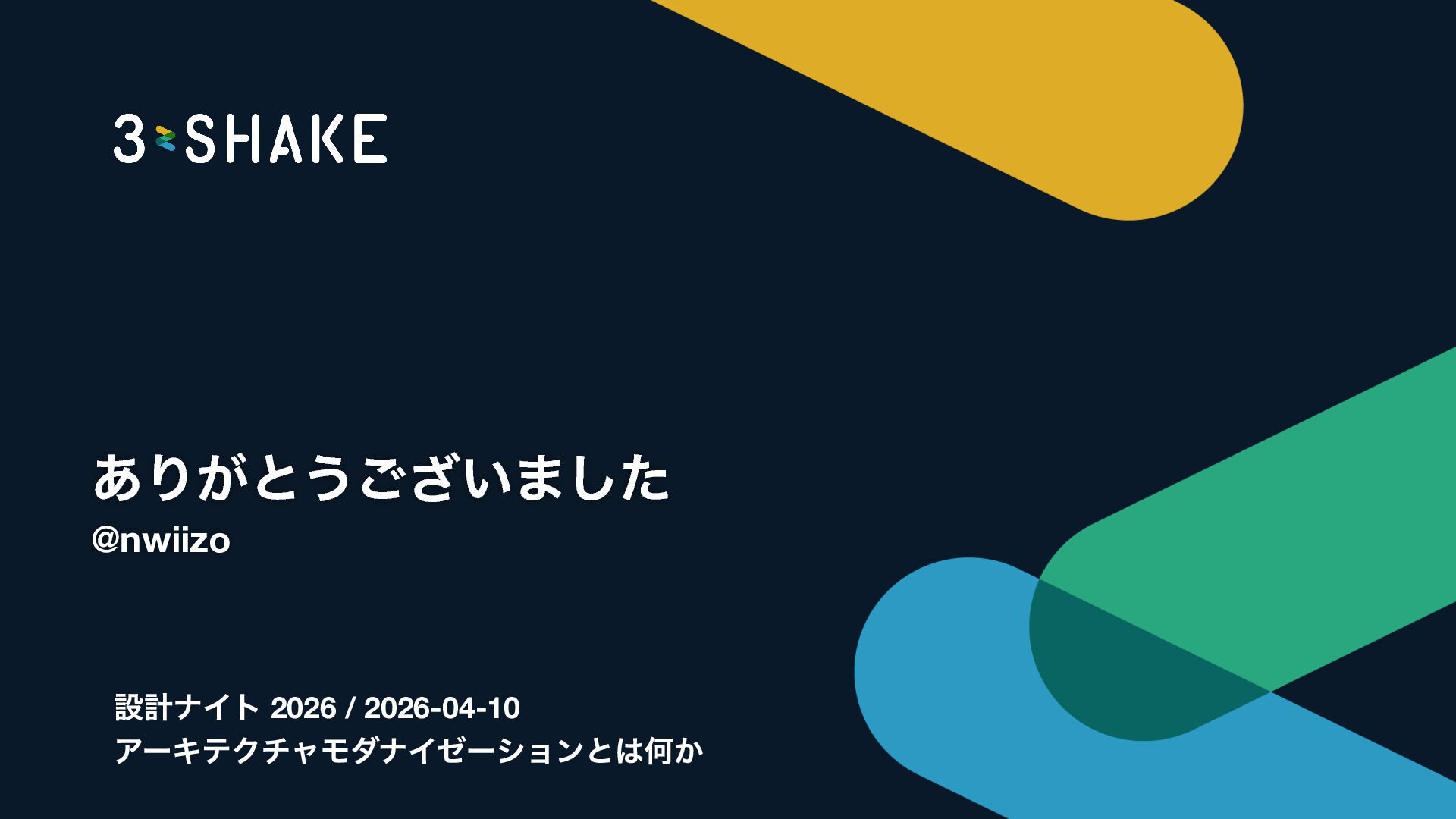 2026年4月10日、「設計ナイト2026」というイベントで「アーキテクチャモダナイゼーションとは何か―技術・事業・組織で大事なこと」というタイトルの登壇をしました。まずお伝えしたいのは、このスライドを20分に収めようとしていた人間がいるということです。私です。