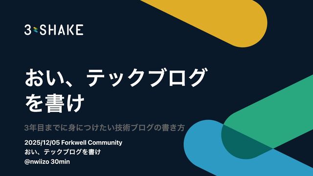 2025年12月5日に「おい、テックブログを書け」という登壇をした。
