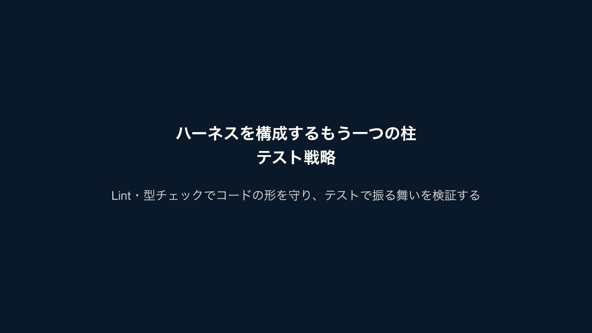ハーネスを構成するもう一つの柱 テスト戦略 Lint ・型チェックでコードの形を守り、テストで振る舞いを検証する