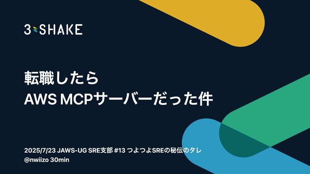 「 転職したらMCPサーバーだった件」というタイトルで登壇したことがある。本日は「JAWS-UG SRE支部 #13 つよつよSREの秘伝のタレ」というなんとなく強そうなイベントで登壇しました。