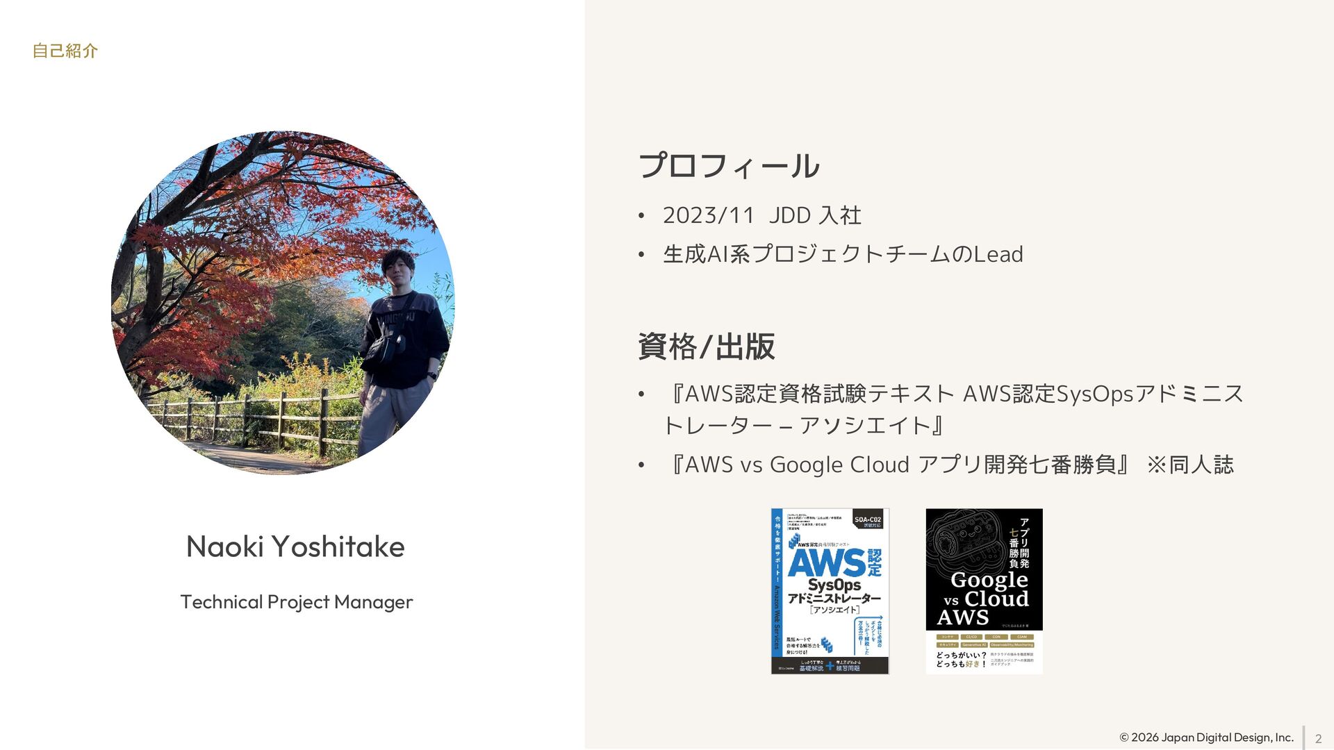 2 © 2026 Japan Digital Design, Inc. 自己紹介 Naoki Yoshitake