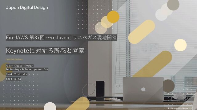 Inc. Fin-JAWS 第37回 ~re:Invent ラスベガス現地開催 Keynoteに対する所感と考察 Japan Digital Design Technology & Development Div Naoki Yoshitake 2024.12.04