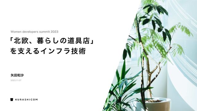 「北欧、暮らしの道具店」 矢田和沙 2023.11.07 Women developers summit 2023 を支えるインフラ技術