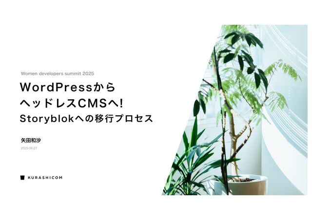 WordPressから ヘッドレスCMSへ! Storyblokへの移行プロセス 矢田和沙 2025.06.27 Women developers summit 2025