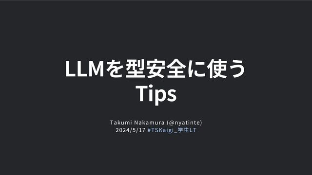 Takumi Nakamura (@nyatinte) 2024/5/17 #TSKaigi_学生LT LLMを型安全に使う Tips