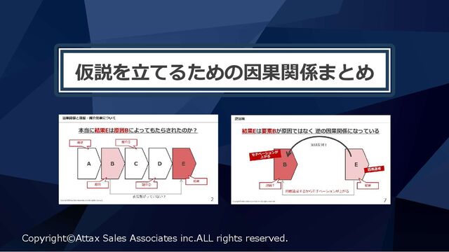 仮説を⽴てるための因果関係まとめ Copyright©Attax Sales Associates inc.ALL rights reserved.