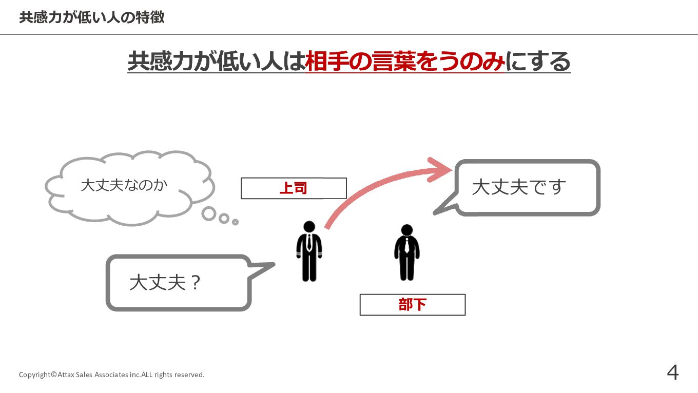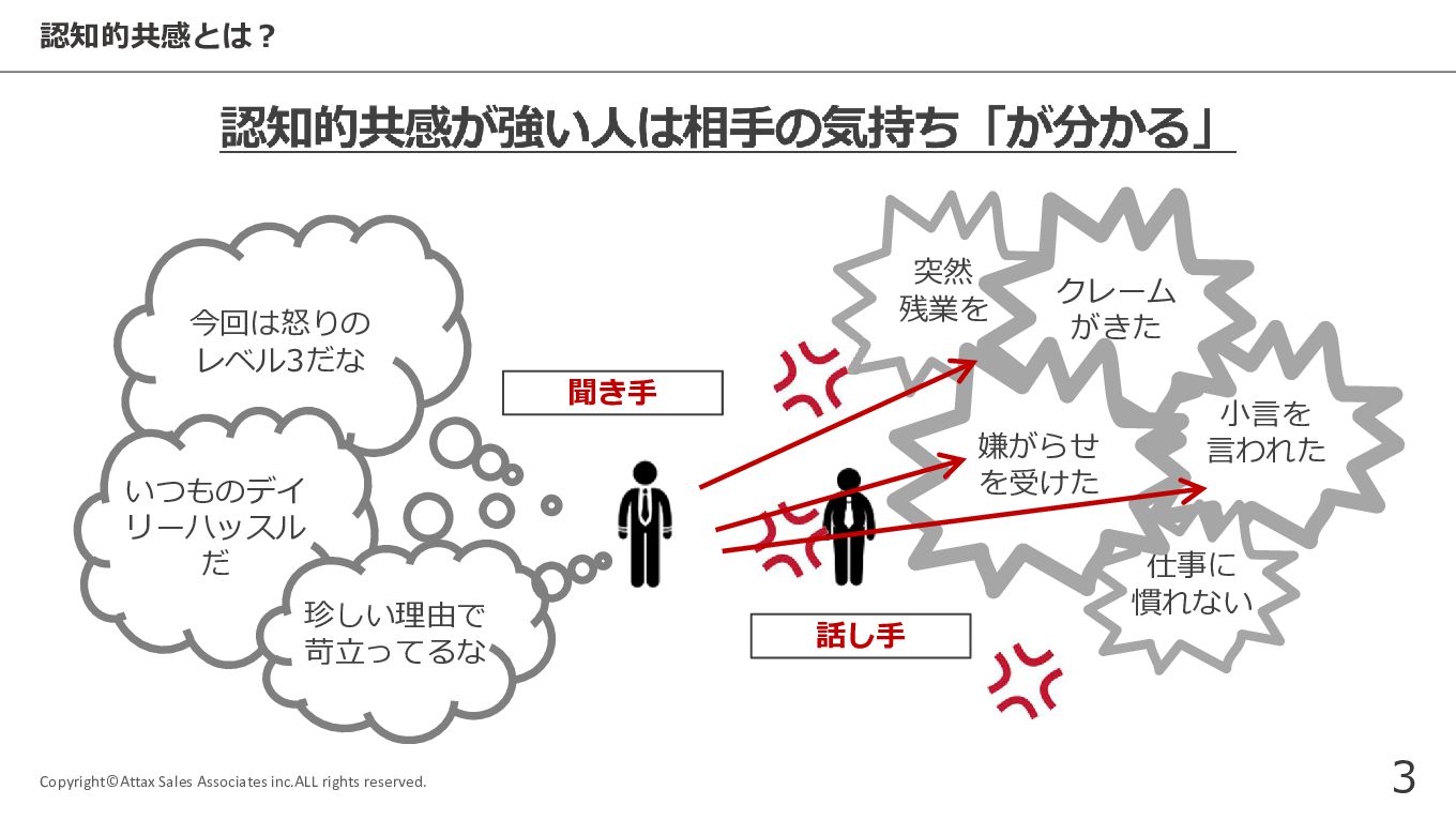 2. 認知的共感とは︖ Copyright©Attax Sales Associates inc.ALL rights reserved. 3 聞き手 話し手