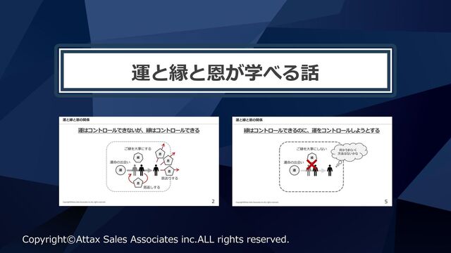 Copyright©Attax Sales Associates inc.ALL rights reserved. 5 運と縁と恩の関係 運 縁