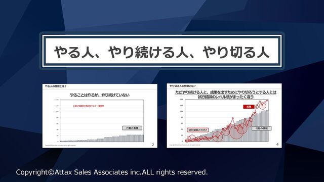 やる⼈、やり続ける⼈、やり切る⼈ Copyright©Attax Sales Associates inc.ALL rights reserved.