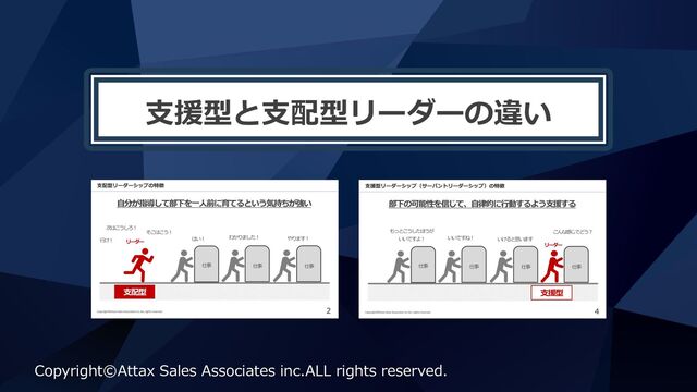 ⽀援型と⽀配型リーダーの違い Copyright©Attax Sales Associates inc.ALL rights reserved.