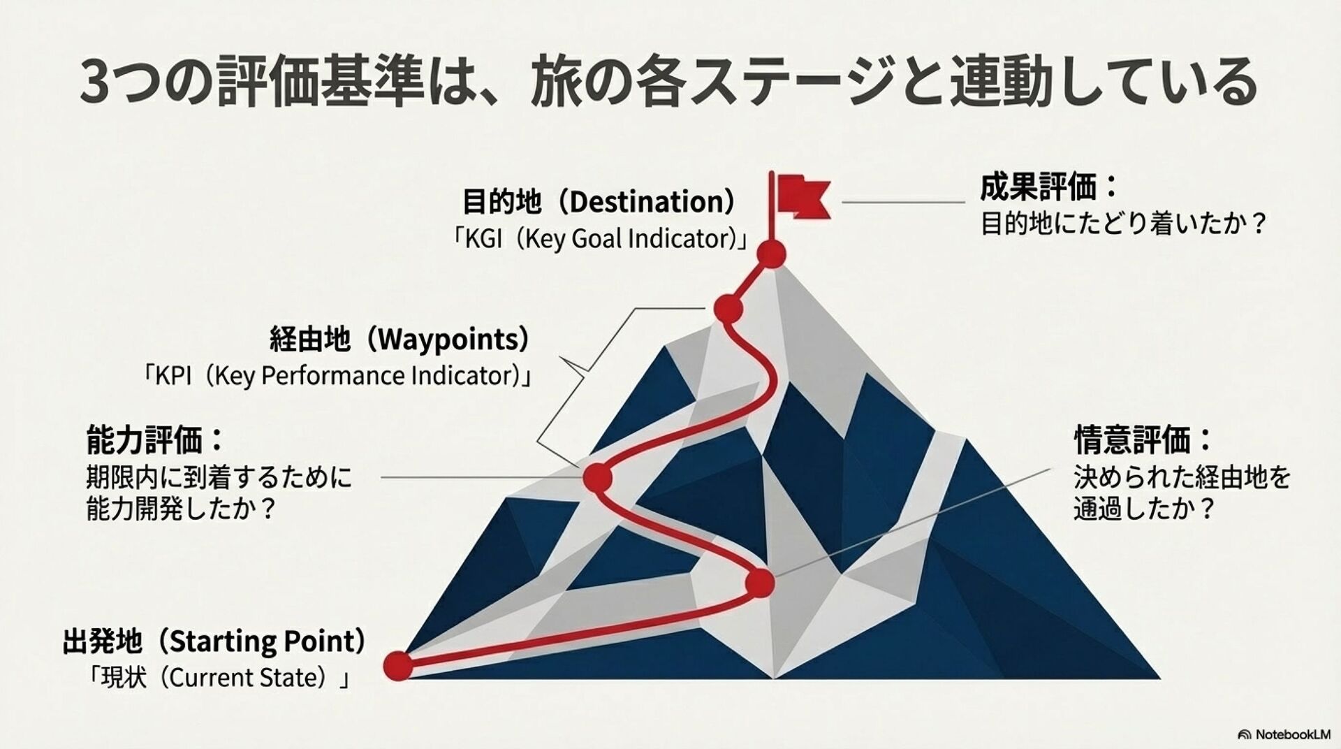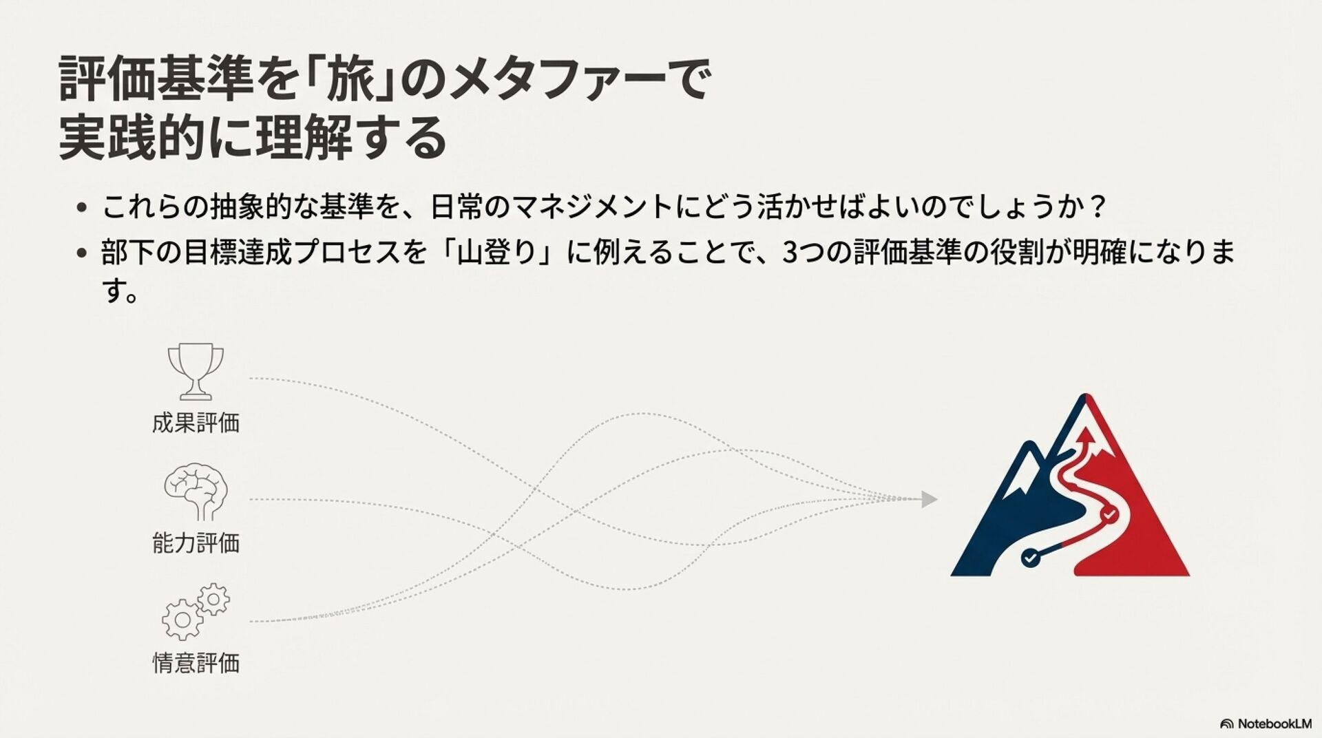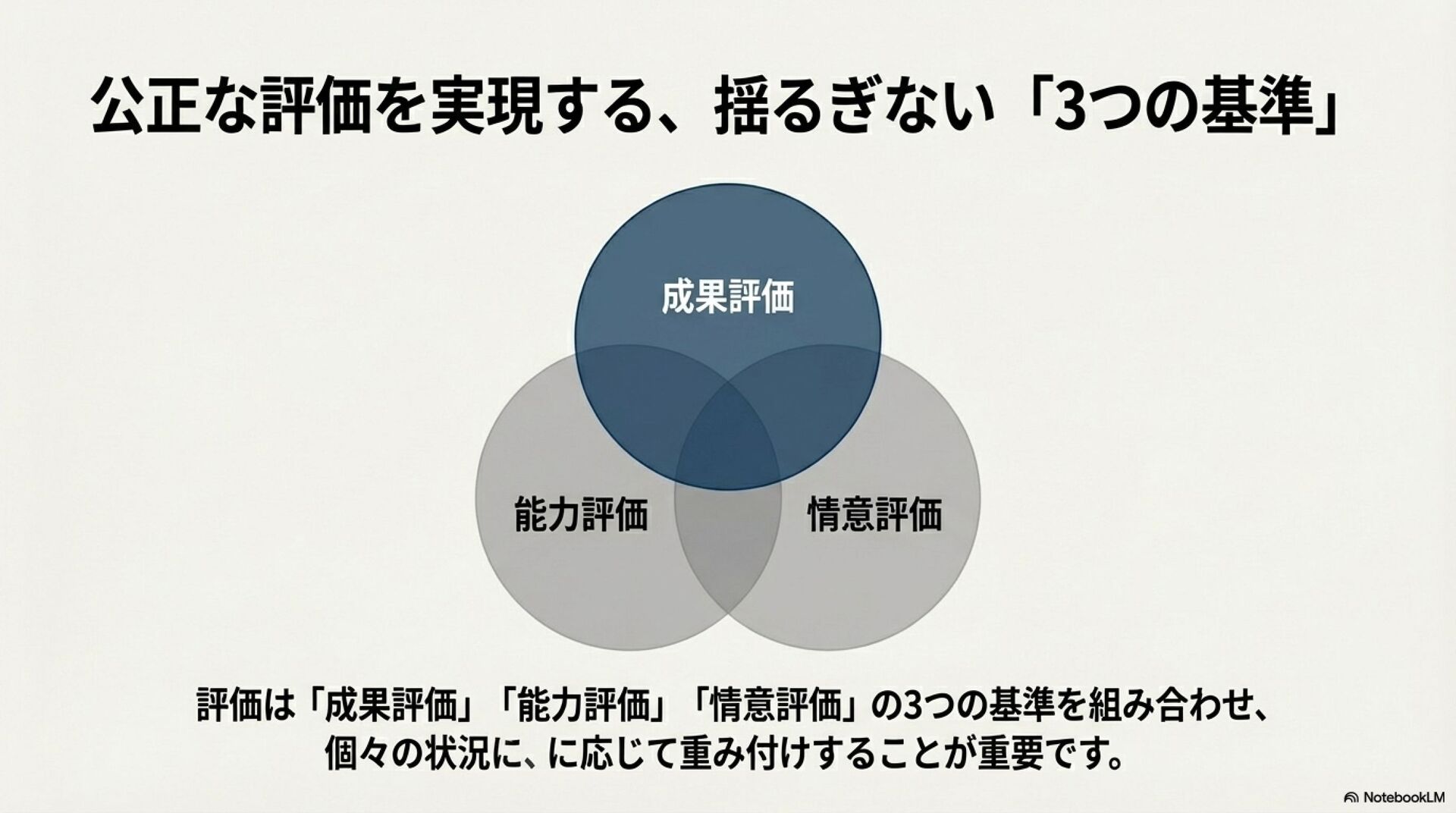 (4枚)マネジメントと3つの評価基準との関係(成果評価・能力評価・情意評価)