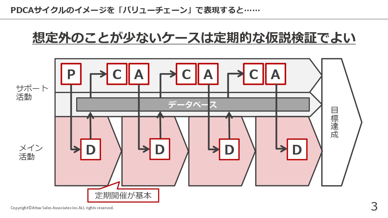 PDCAサイクルのイメージを「バリューチェーン」で表現すると…… Copyright©Attax Sales Associates inc.ALL rights reserved. 3 目 標