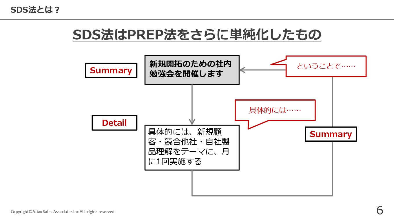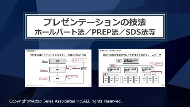 プレゼンテーションの技法 ホールパート法/PREP法/SDS法等 Copyright©Attax Sales Associates inc.ALL rights reserved.