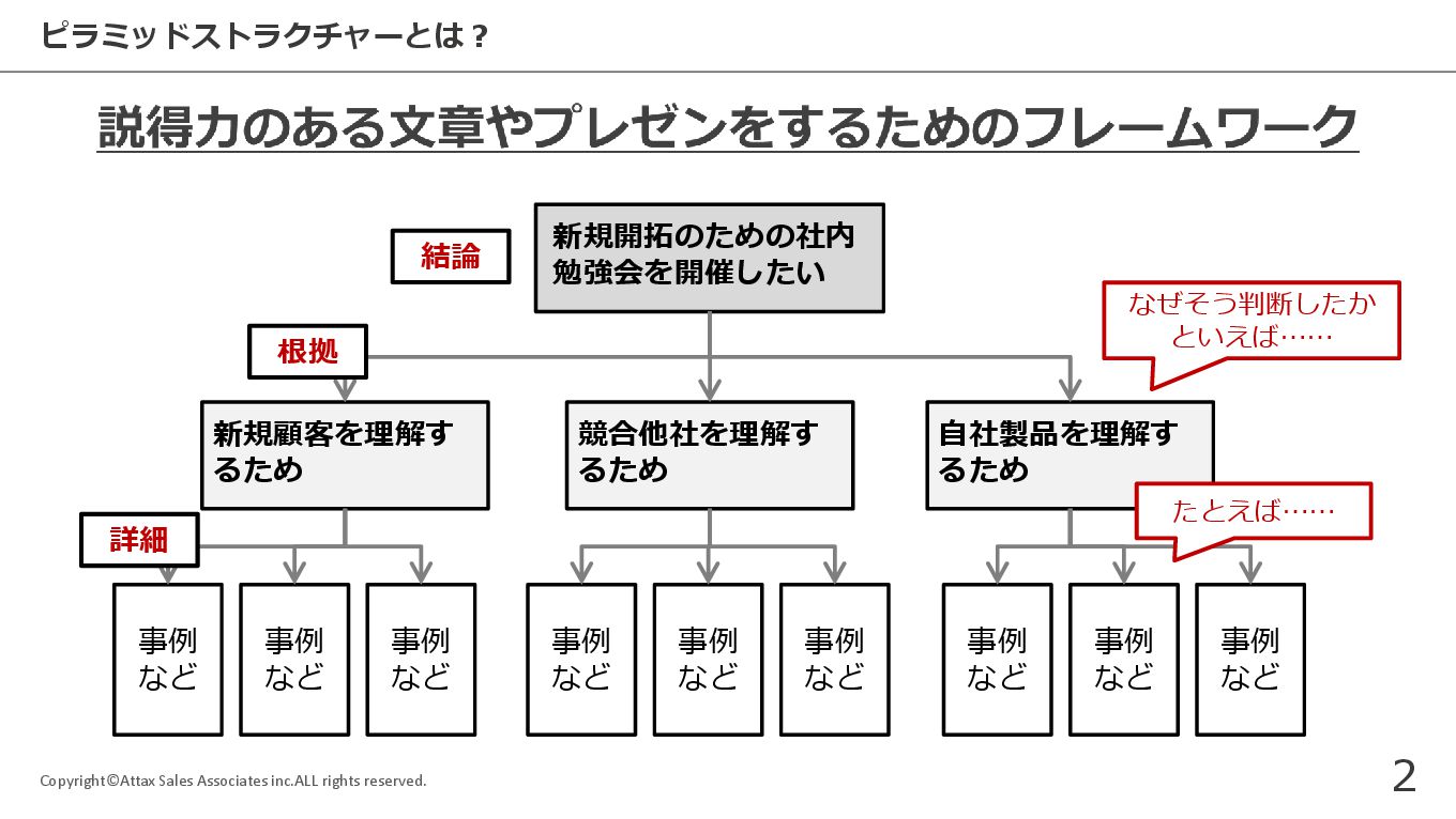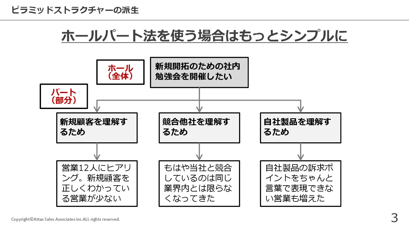 ピラミッドストラクチャーとは︖ Copyright©Attax Sales Associates inc.ALL rights reserved. 2 新規開拓のための社内 勉強会を開催したい