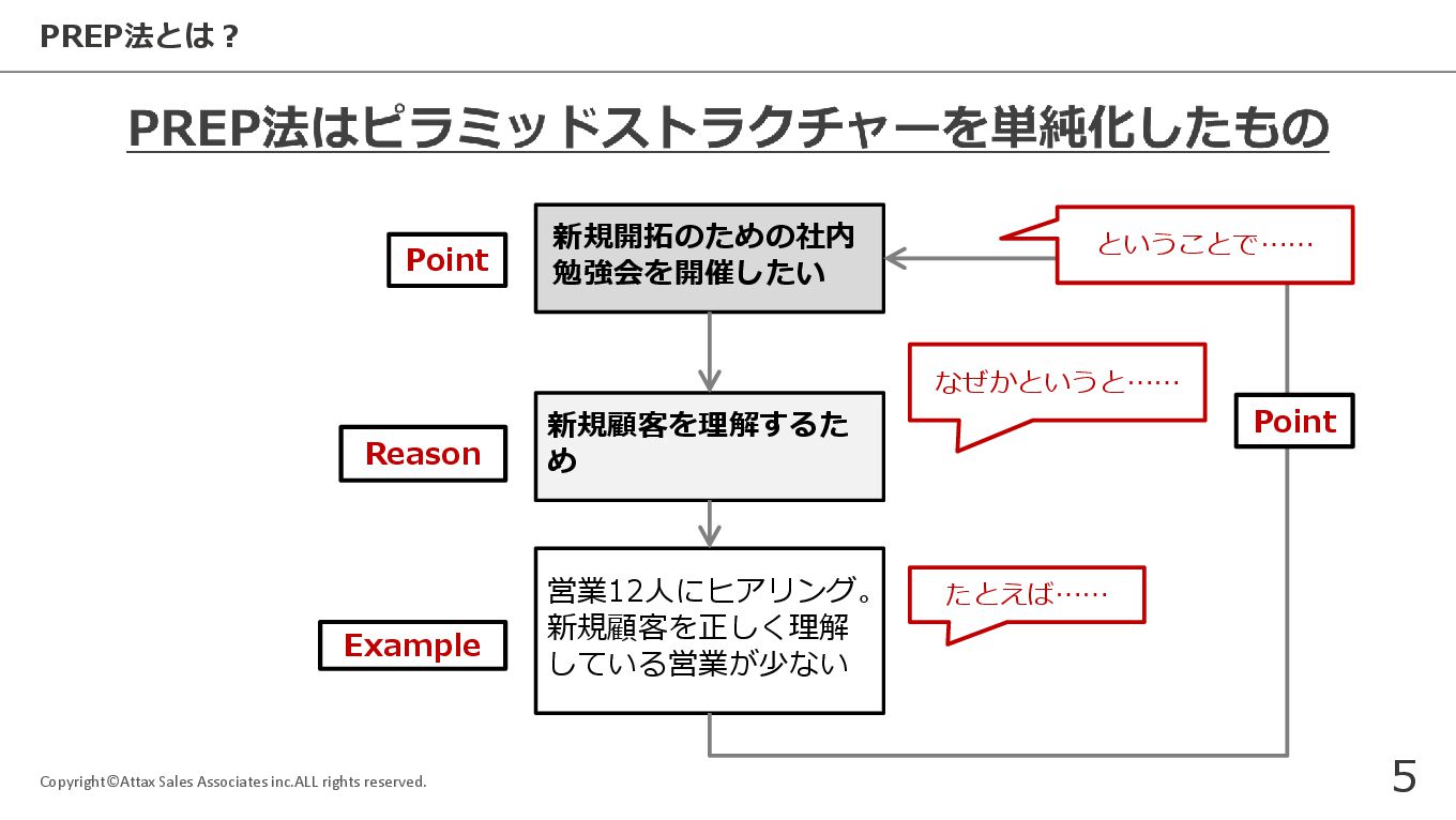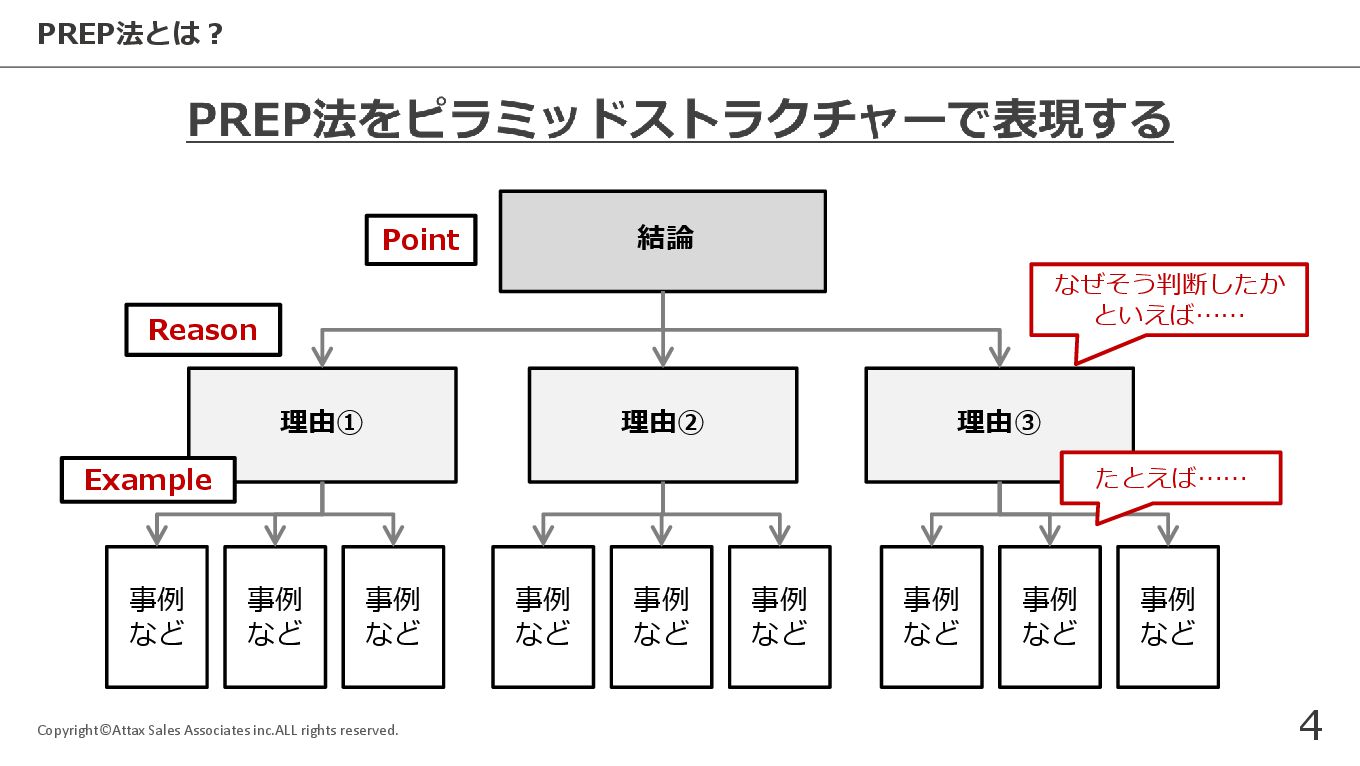 PREP法とは︖ Copyright©Attax Sales Associates inc.ALL rights reserved. 4 結論 理由①