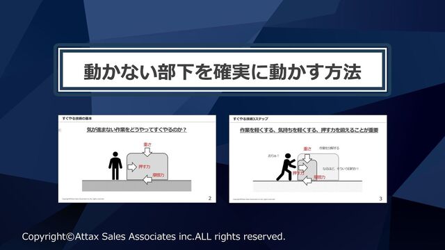 動かない部下を確実に動かす⽅法 Copyright©Attax Sales Associates inc.ALL rights reserved.