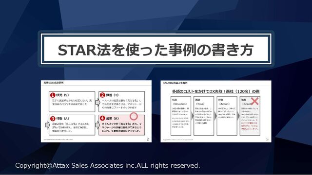 STAR法を使った事例の書き⽅ Copyright©Attax Sales Associates inc.ALL rights reserved.