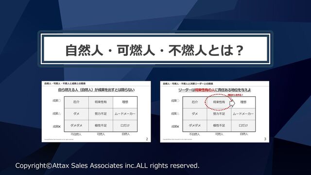 ⾃然⼈・可燃⼈・不燃⼈とは︖ Copyright©Attax Sales Associates inc.ALL rights reserved.