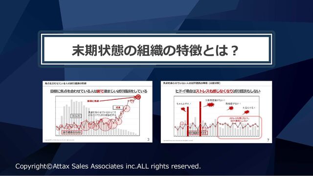 5. 焦点を合わせていない人の試⾏錯誤の特徴(末期状態) Copyright©Attax Sales Associates inc.ALL rights reserved. 7 0 20