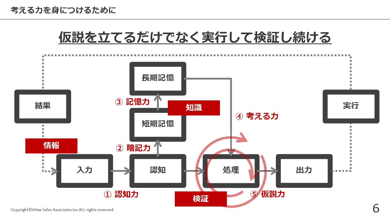考える⼒を⾝につけるために Copyright©Attax Sales Associates inc.ALL rights reserved. 6 ⼊⼒ 認知