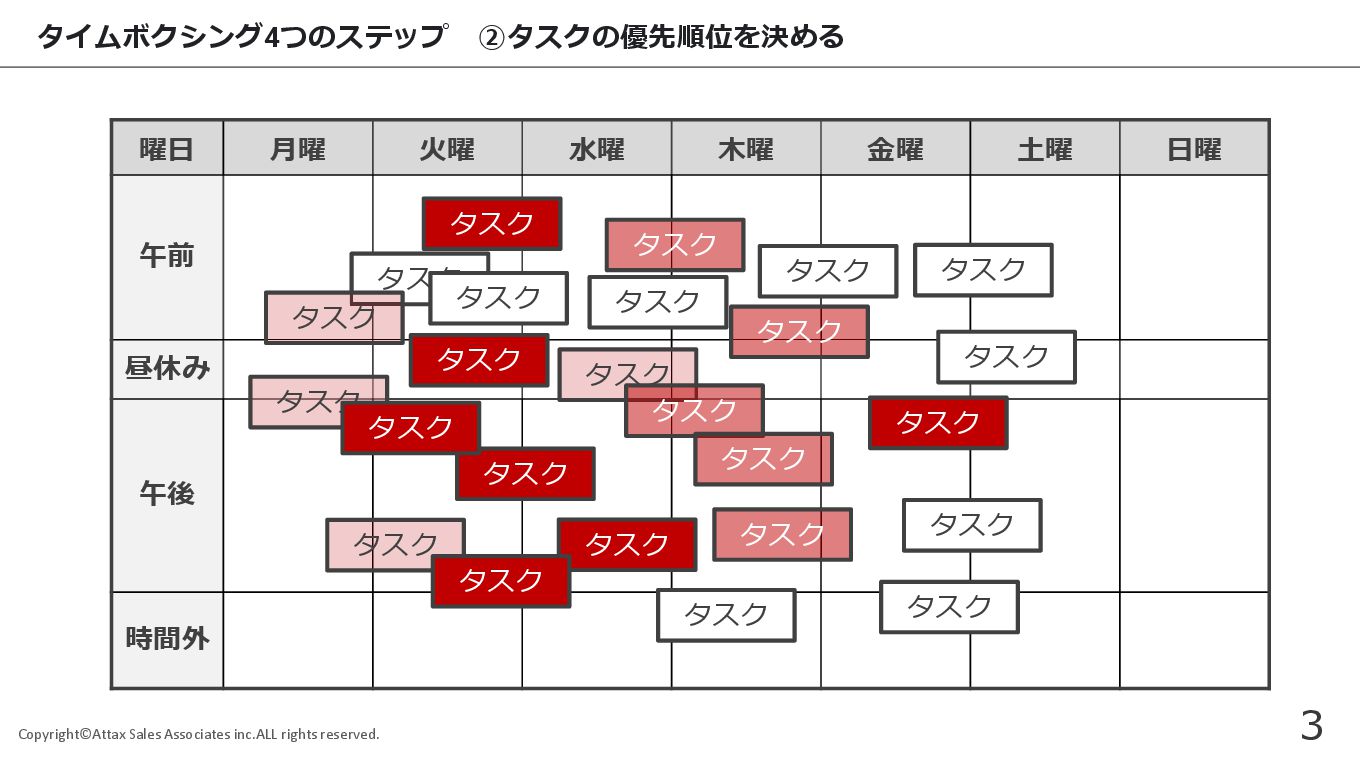 タイムボクシング4つのステップ ②タスクの優先順位を決める Copyright©Attax Sales Associates inc.ALL rights reserved. 3 日曜