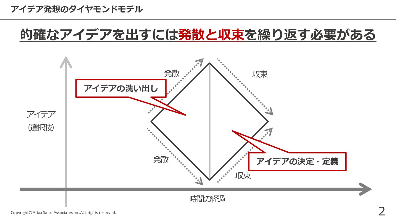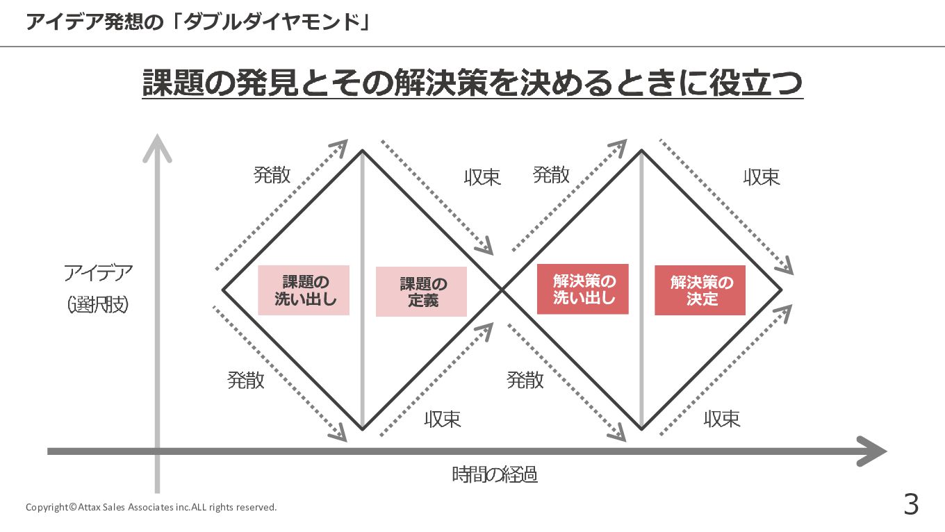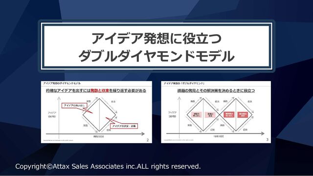 アイデア発想に役⽴つ ダブルダイヤモンドモデル Copyright©Attax Sales Associates inc.ALL rights reserved.