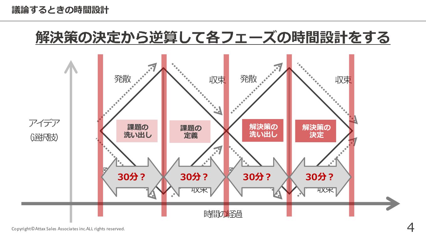 議論するときの時間設計 Copyright©Attax Sales Associates inc.ALL rights reserved. 4 課題の 洗い出し