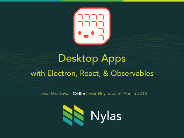 Desktop Apps with Electron, React, & Observables Evan Morikawa |