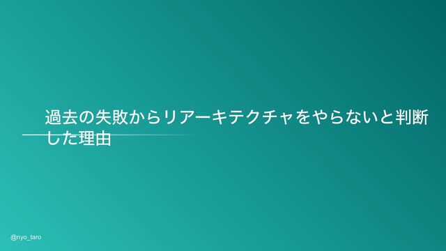 過去の失敗からリアーキテクチャをやらないと判断 した理由 @nyo_taro