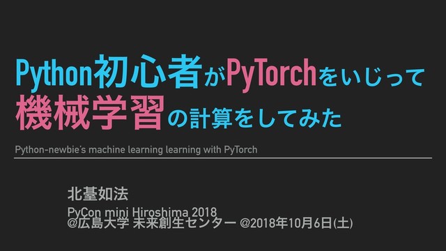 PyCon mini Hiroshima 2018 (2018年10月6日(土)) での「Python初心者がPyTorchをいじって機械学習の計算してみた」という稚拙な発表のスライドです。